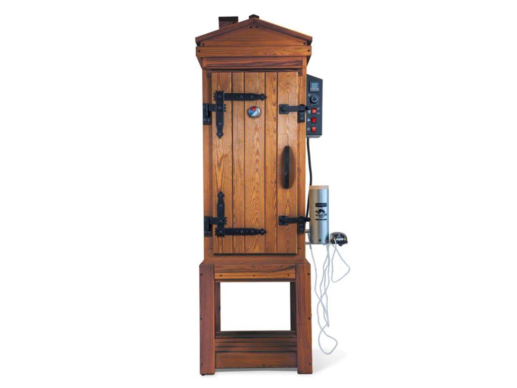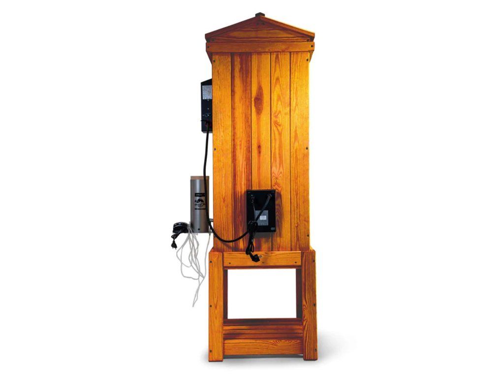 Elektrická udírna Jelux nabízí spojení tradiční dřevěné konstrukce a moderního komfortu při obsluze.