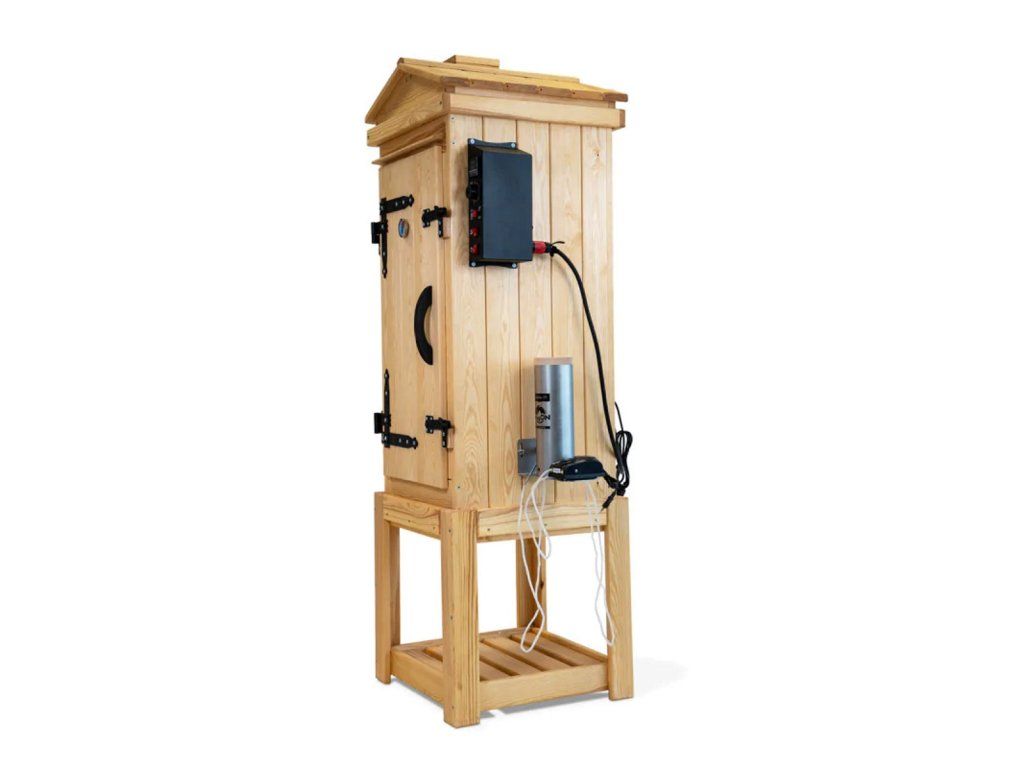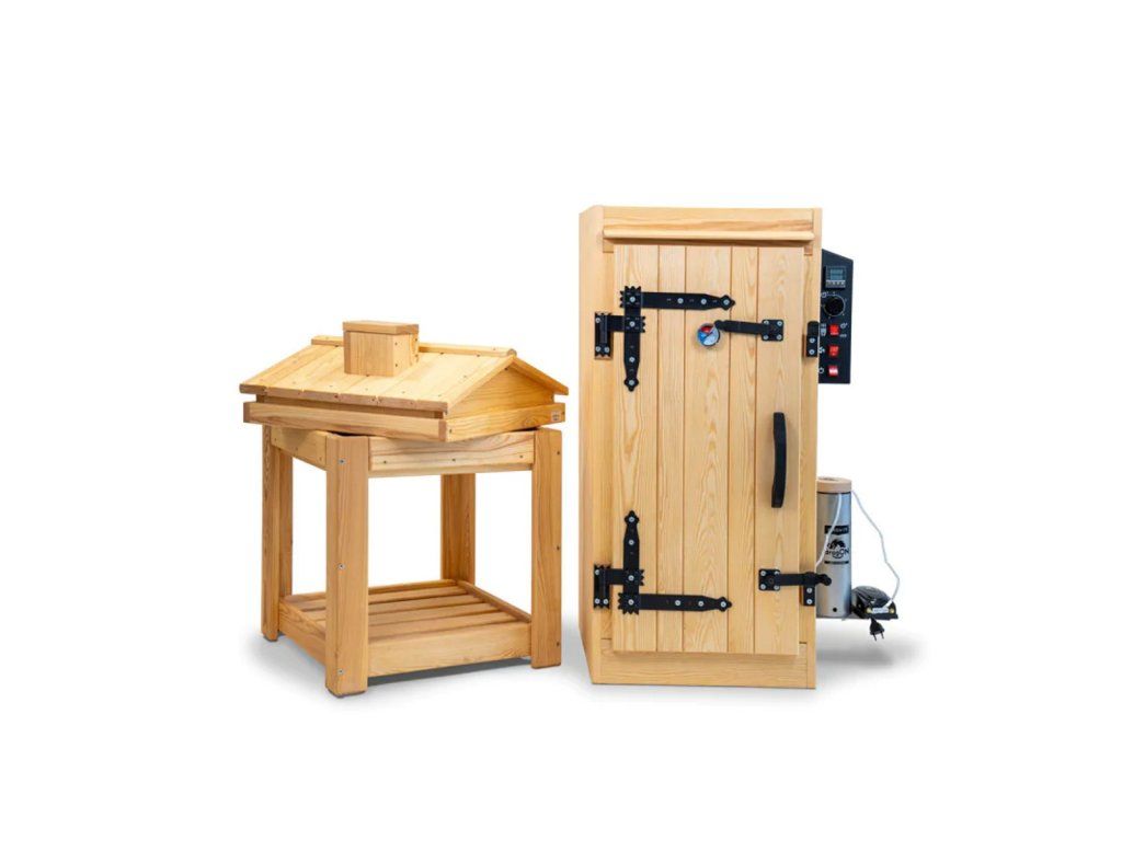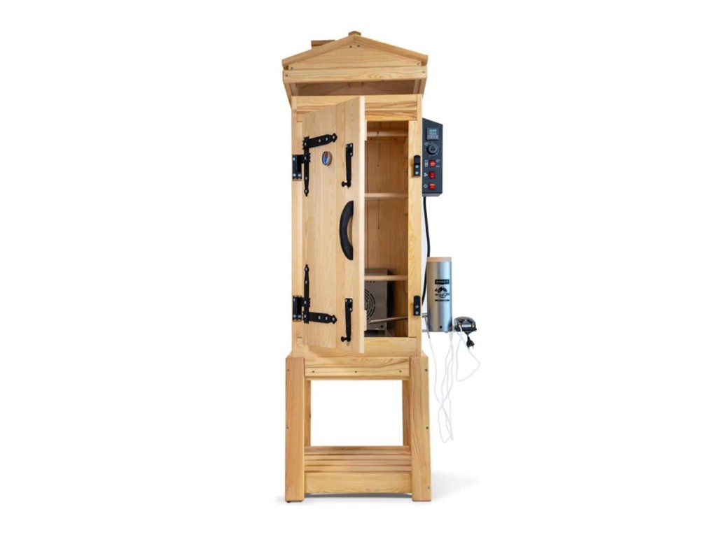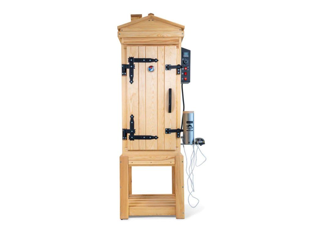 Elektrická udírna Jelux nabízí spojení tradiční dřevěné konstrukce a moderního komfortu při obsluze.