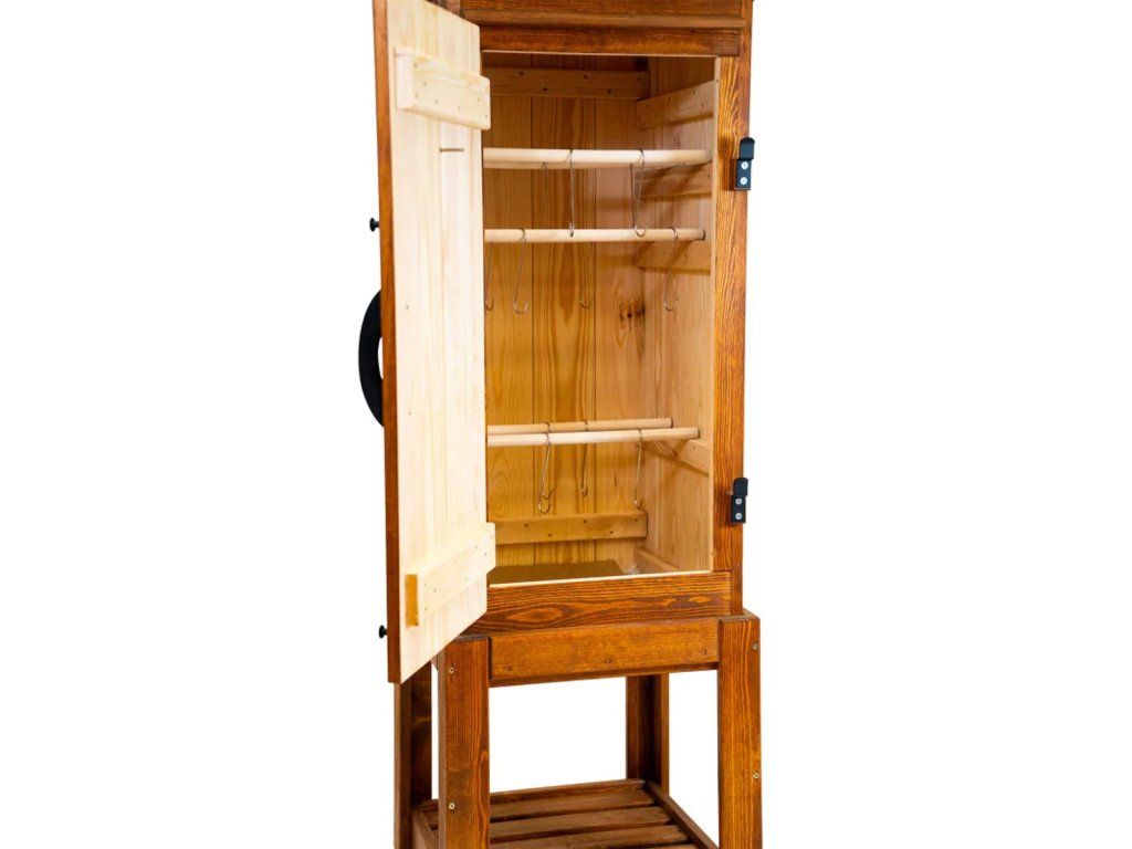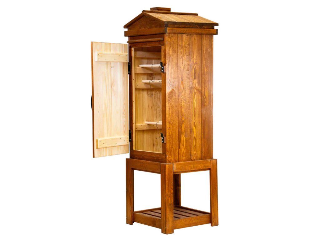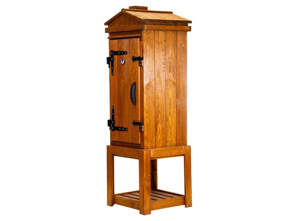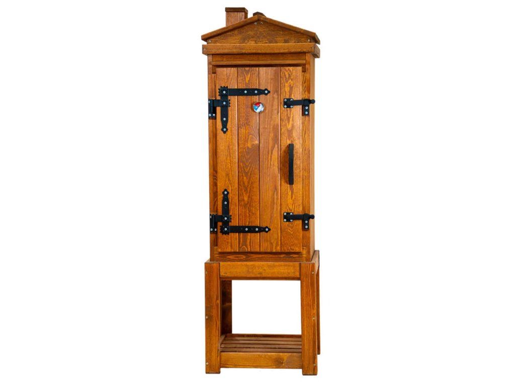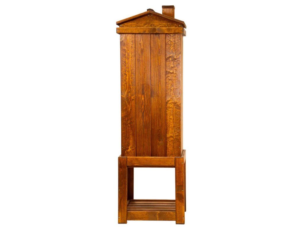 Tradiční dřevěná udírna Jelux o objemu 220 litrů je ideální volbou pro všechny, kdo dávají přednost klasickému způsobu uzení bez elektroniky. Tato zahradní udírna je vyrobena z masivního borovicového dřeva a zaujme nejen svou funkčností, ale také elegantním provedením v dekoru jabloň, které se dobře hodí do zahrady i na chalupu.