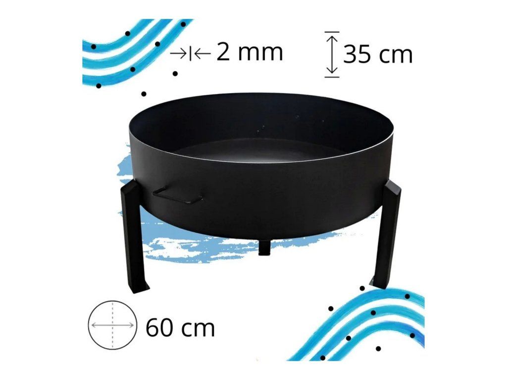 Ohniště je vyrobeno z oceli s práškovým lakováním a díky síle materiálu 2 mm nabízí dobrou pevnost a stabilitu při používání. Hodí se nejen pro běžné rozdělání ohně, ale také pro použití s grilovacím roštem nebo kotlíkem.